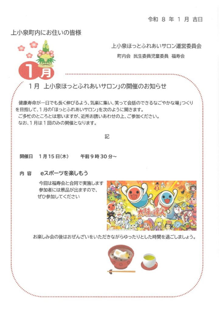 1月ほっとふれあいサロン開催のお知らせ
