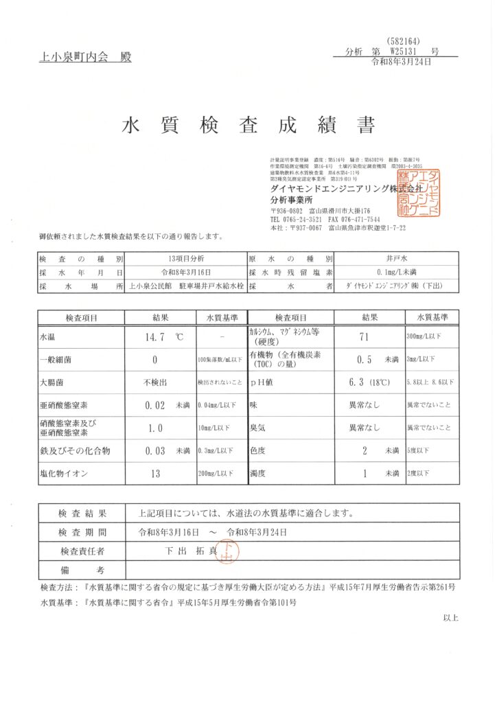 水質検査を実施したところ、問題ございませんでした。