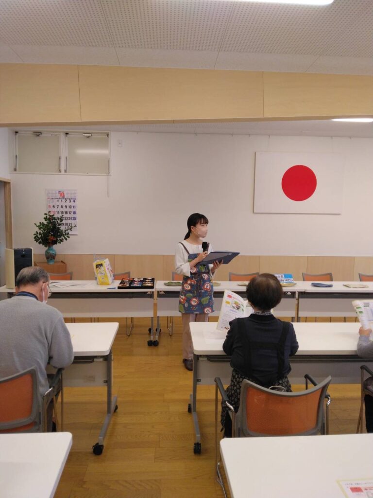 10月23日のサロンでは市役所から宮下管理栄養士さんを迎えて、調理実習をしました。