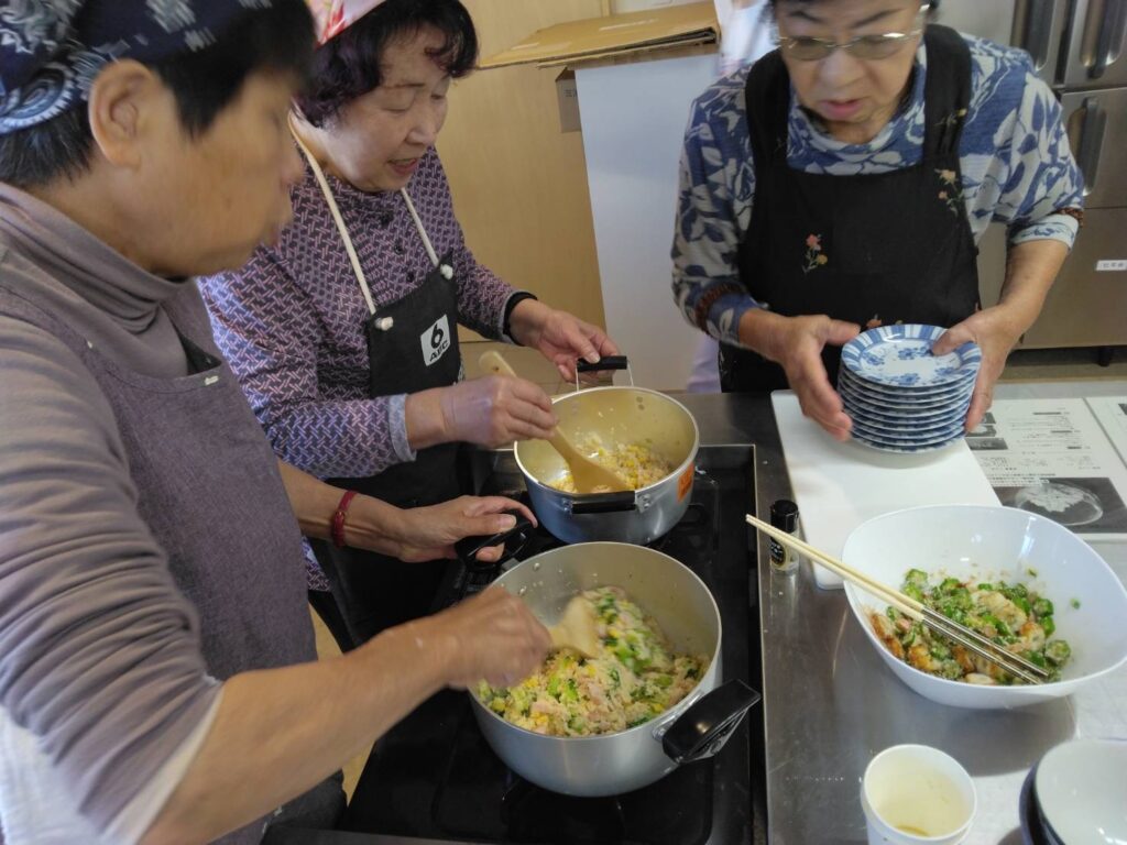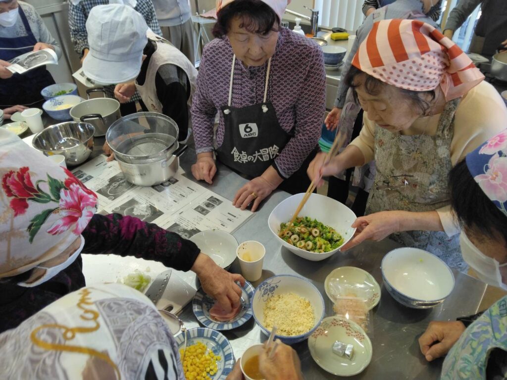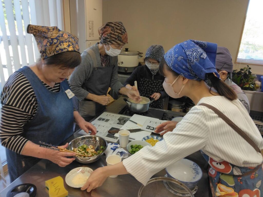 和気あいあいと簡単で栄養たっぷりのおかずを作り、試食しました。