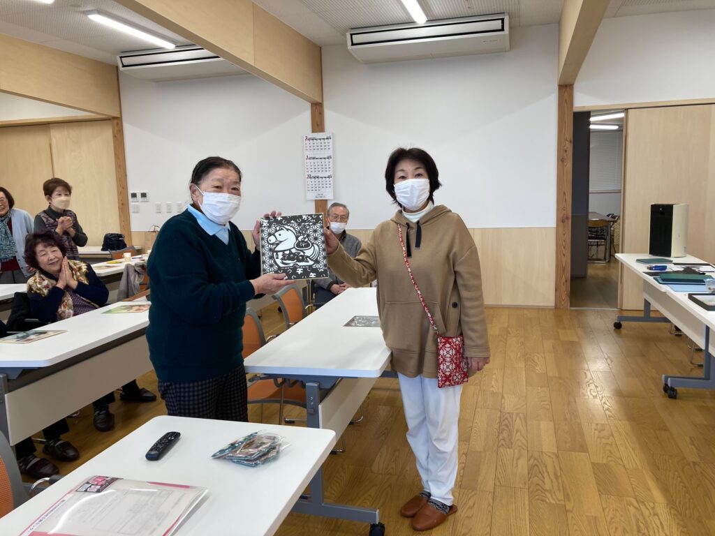 12月4日のサロンでは、松井秀子先生を招いて、来年の干支の切り絵をしました。