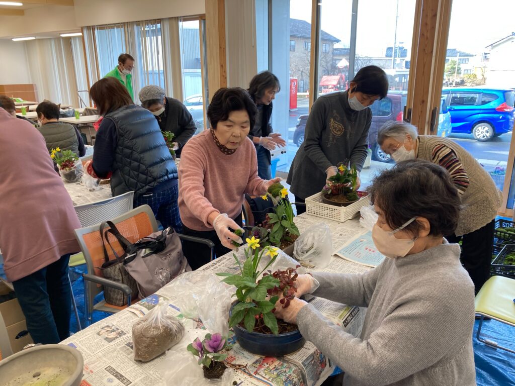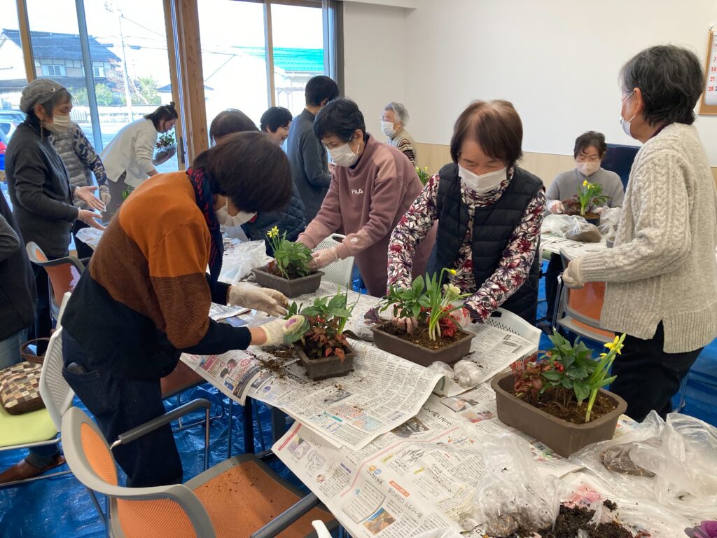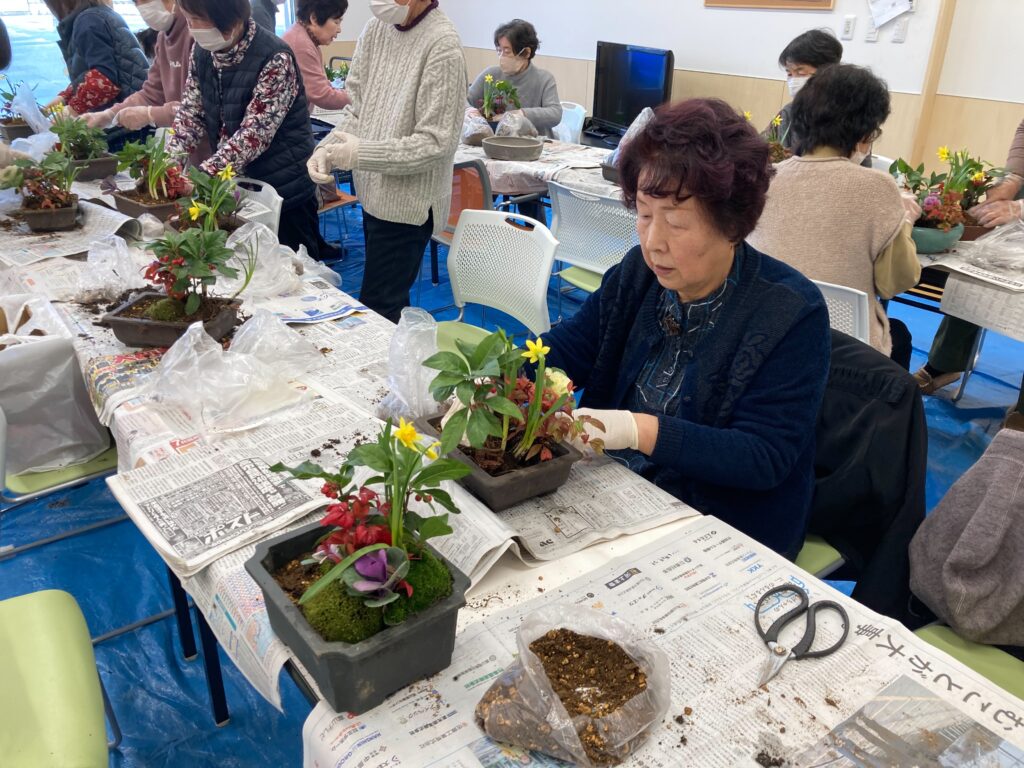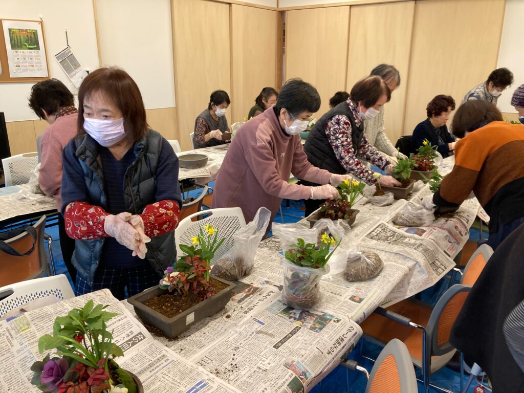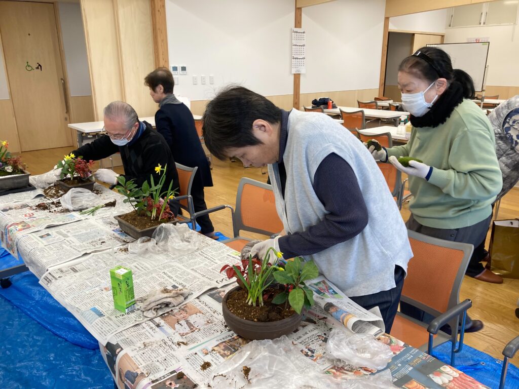 12月18日のサロンは来年のお正月用の寄せ植えをしました。