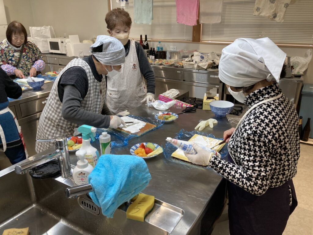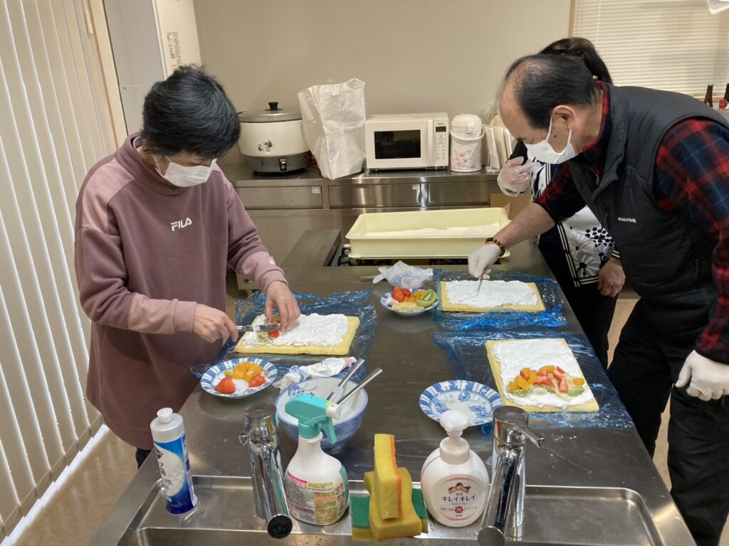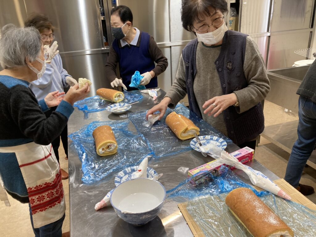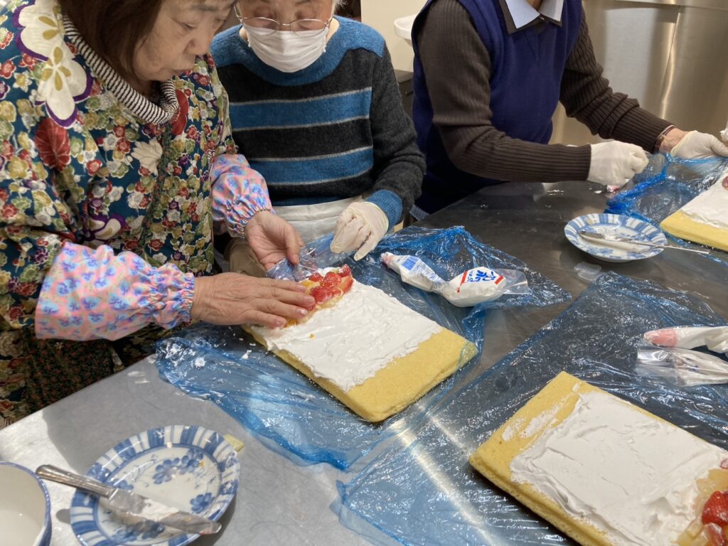 2月26日のほっとふれあいサロンはキラピカ体操をした後、ロールケーキを作りました。