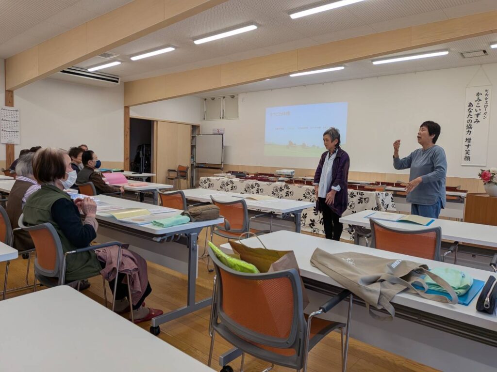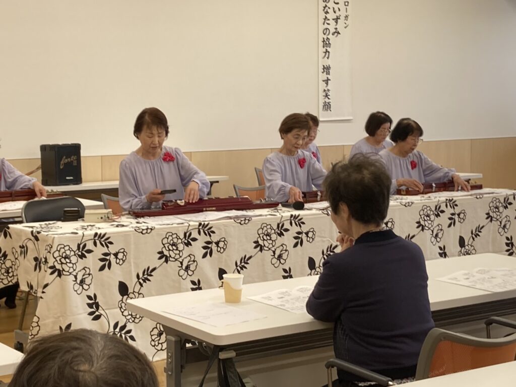 4/23(木)のサロンでは琴友会を招いて、大正琴の演奏を聴き、みんなで一緒に歌を歌いました。